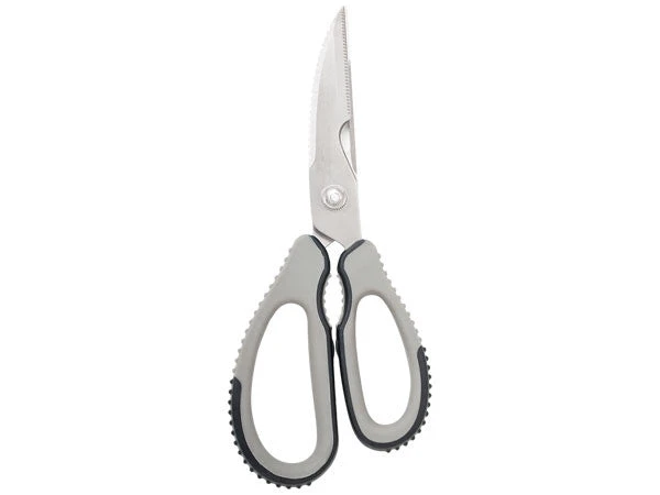 Rapala Fish and Game Shears provide one tool for a multitude of cutting tasks. Shears are great for heavy leverage lopping to fine detail trimming. Includes striaght knife and serrated knive/fish scaler, bottle opener/bone cracker and vegetable peeler. 2-piece design allows for easy cleaning. Oversize grip is ideal size for large hands or working with gloves on.
