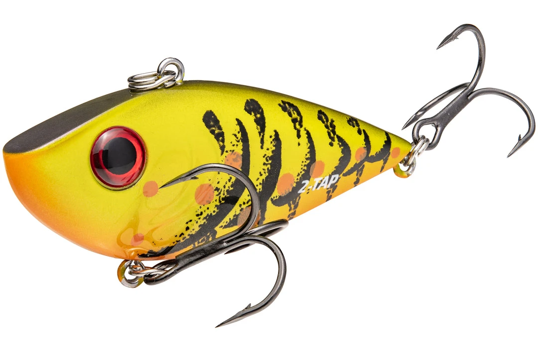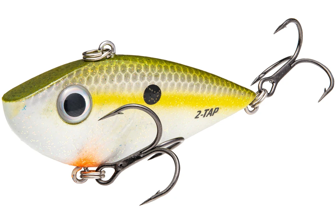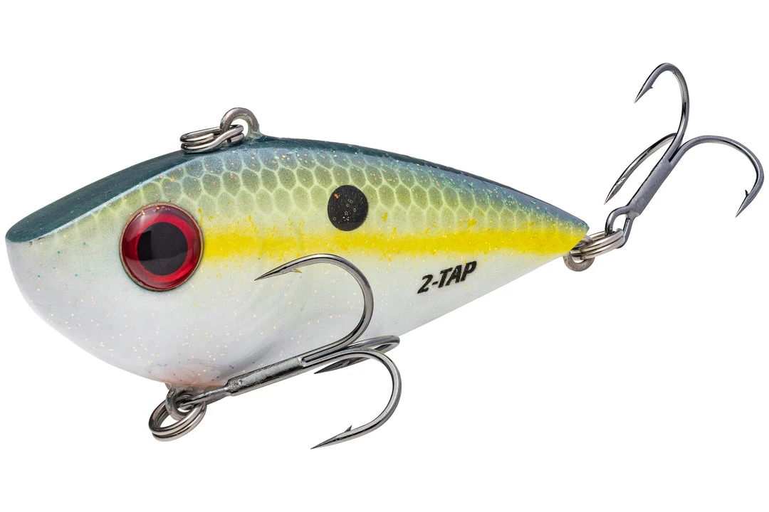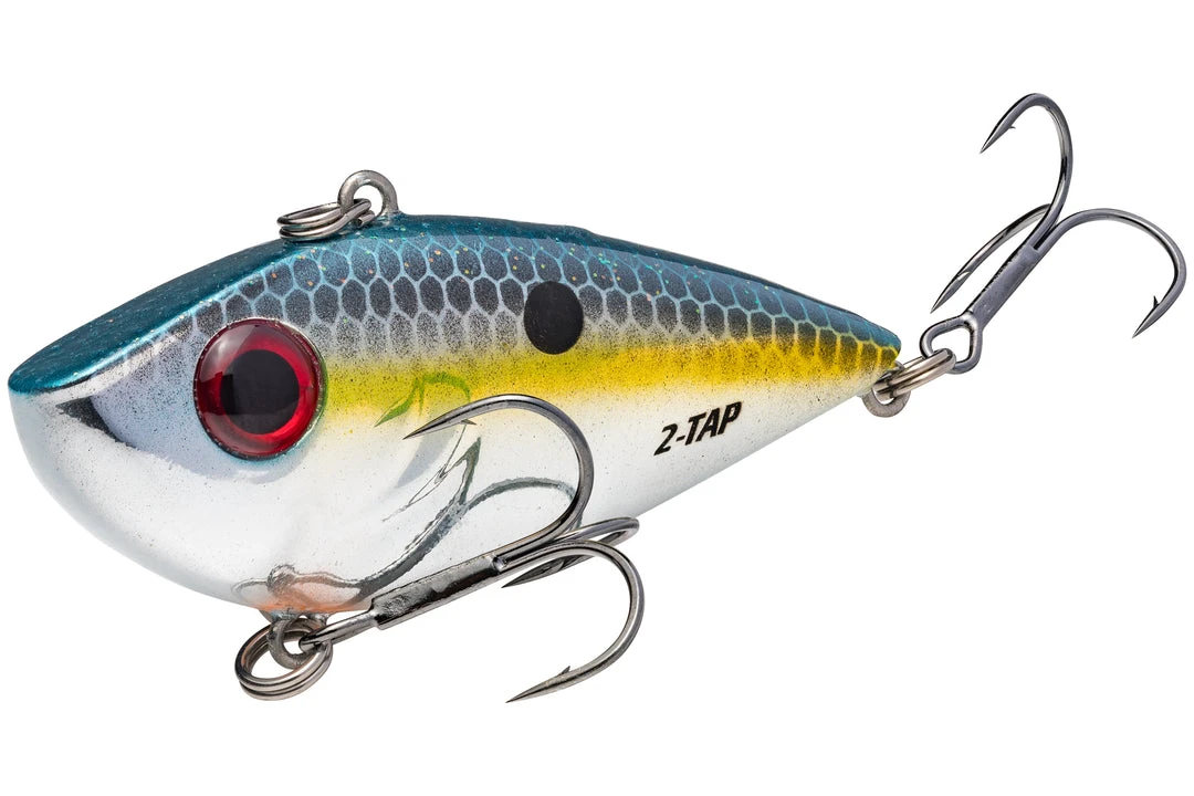 - The Strike King Red Eyed Shad Tungsten 2 Tap is a 1/2 ounce, 2 1/2 inch lipless crankbait with a novel, unique double tap cadence.
