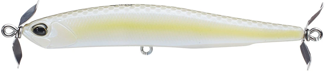 The Duo Realis Spinbait 80 spybait’s origin is rumored to have occurred around Lake Biwa 2007/ 2008. Others mention its popularity near Tokyo, Chiba and Yokahama where there are many small bodies of water. At that time versions of using a lure with propellers took on names like “pro-bait” and “screw-bait or Bi-hadou (also known as micro-wave)”. However, during that time anglers were attaching propellers to many lures: swimbaits, jerkbait-bodied lures, even jig-heads, in fact, using a propeller became so popular that anglers were purchasing just propellers to attached to in front of their lures.