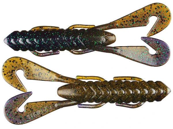 The Gambler Burner Craw is another versatile craw bait from Gambler Lures. This bait has been designed to be compact to go through the thickest of mats and grass. The round beefy body is perfect for holding a large flipping hook and helps keep the point of the hook from hanging up. This results in more efficiency when punching heavy cover. No need to continually be re-rigging and grabbing a new bait because the point of your hook is catching on cover. The tail section has two aggressive action arms that put out a non stop vibration that fish can really key in on. Don’t forget to try the Gambler Burner Craw on the back of your jig either.