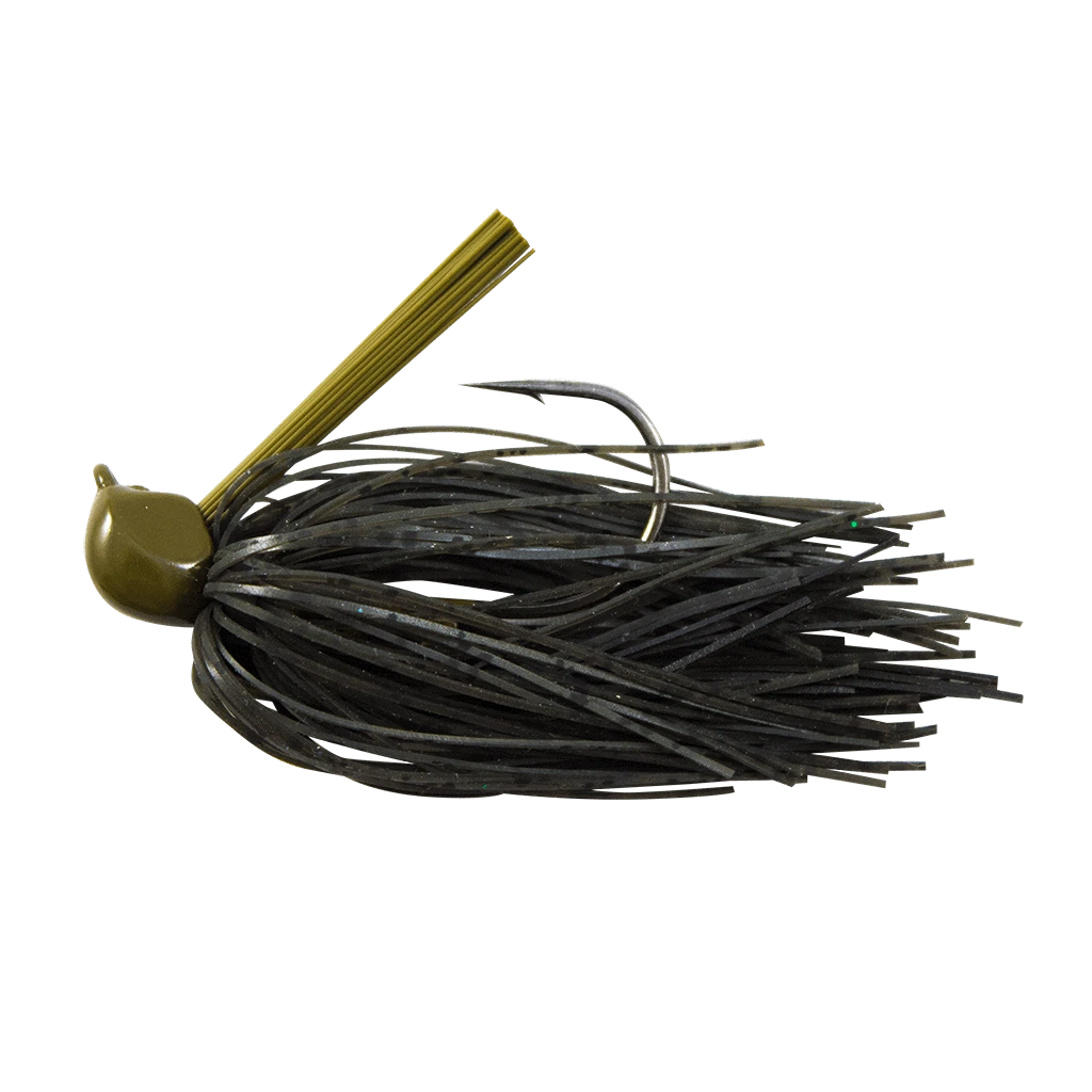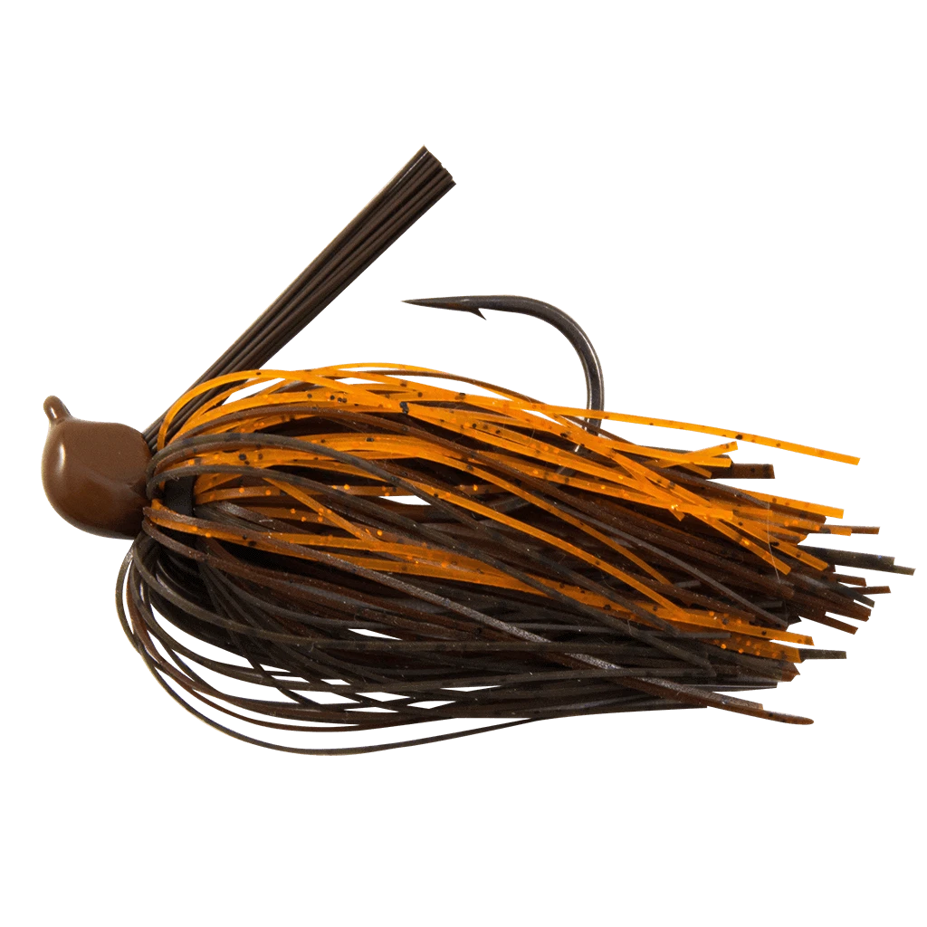 The Fish Head ProSeries M1 Casting Jig is a skirted bass jig. Offering anglers a hybrid jig design, this bass jig delivers the benefits of multiple jigs all rolled into one. Equipped with a medium-heavy fiber weedguard that protects the heavy wire 4/0 Mustad Ultra Point hook from snagging. It gives all the advantages of a casting, football, skipping, and standup style jig in one great lure. Available in 7 colors and 2 weights.
