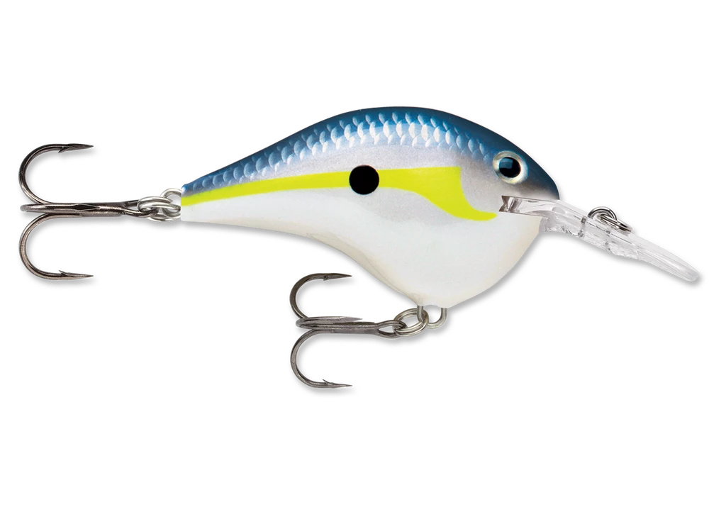 The Rapala DT (Dives-To) DT6 Crankbaits dive fast to a preset depth and stay in the “strike zone” longer than any than other crankbait on the market. Made from the top seven percent of balsa wood, this consistently perfect wood combined with carefully placed internal weights, tapered fuselage and thin tail design creates the ultimate crankbait action, found only in the Dives-To family. Ultra-thin polycarbonate lip digs the bait down quickly to desired depth. Swimming with a side-to-side action only balsa crankbaits can achieve, the DT cranks deep, yet pulls with ease. Perfectly weighted to rest in a “quick-dive” nose down position allowing for immediate descent to desired depth, the DT6 can be easily cast 150 feet. Simply put, the farther the cast, the longer the bait stays in the strike zone. It’s the most effective way to cover more water and catch more fish. Internal baritone rattle is tuned for best sound performance. Premiere finishes in all the right color patterns, finished with 3D holographic or painted eyes. All Dives To Crankbaits come with premium VMC black nickel hooks. Each lure is hand-tuned and tank-tested to swim perfectly right out of the box.