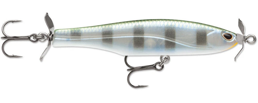 The Arashi Spinbait attracts wary suspended fish on the fall and during the retrieve with its delicate rolling action and revolving blades. Slow sinking – head down with a slight body shimmy and moving propellers as you count it down to depth. Counter Rotating Propellers- add subtle flash and vibration while insuring the bait moves in a straight path. 3-2 Prop Design creates vibration pattern the angler can feel ensuring the optimal slow retrieve speed to maximize the lures’ action and to maintain depth.