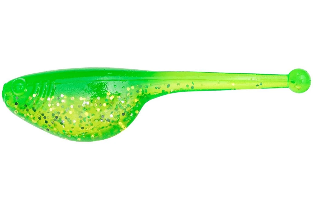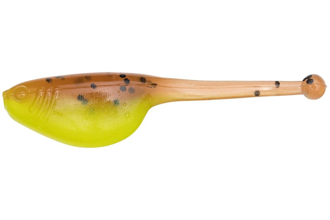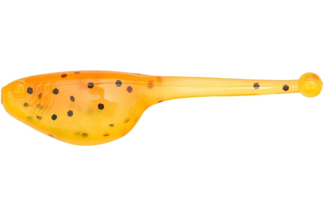 - Its 2-inch body produces darting action like a threadfin shad and squiggling tail like a tadpole.